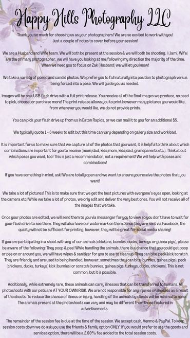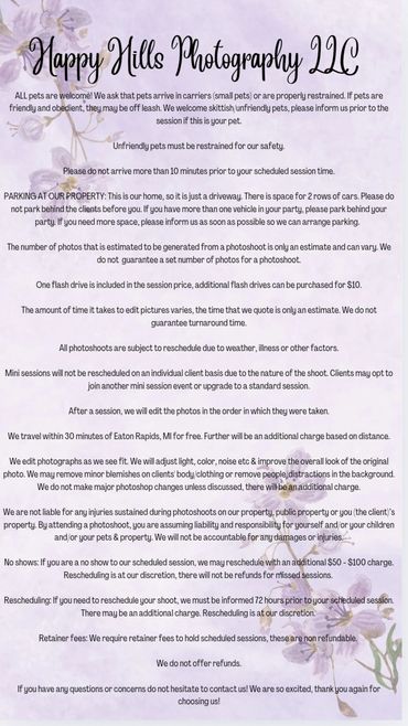 We want everyone to be able to have photos to capture their special memories, and we never want money to be what prevents that. If you are having trouble coming up with funds for your session, please contact us and we can discuss!